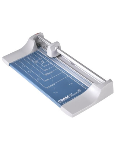 Cizalla de rodillo con mesa metálica. Cuchilla circular rectificada con cabezal de plástico cerrado y cuchilla inferior, prensado automático en el punto de corte y 2 topes angulares. Longitud de corte 320 mm. DIN A4. Capacidad de corte 0,8 mm. Capacidad de