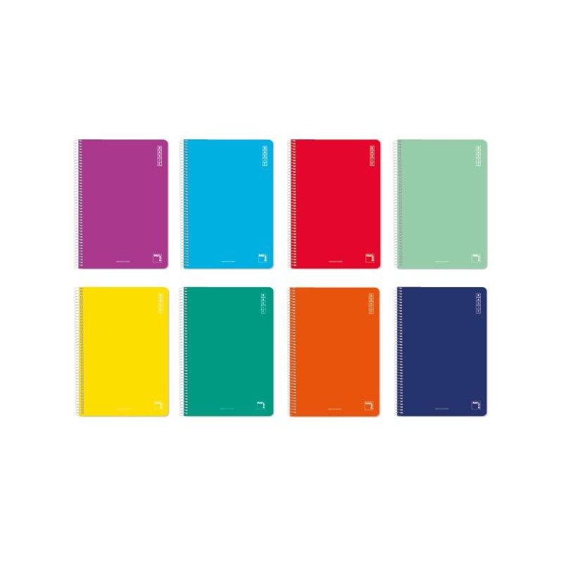 Económicos cuadernos de 80 hojas de 60 gramos. Tapa cartón de 400 gramos. 8 colores surtidos.
