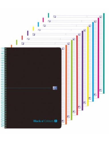 Cuaderno microperforado con bandas de color. Espiral simple. Taladros que facilitan el archivo. Tapa plástico. Color turquesa. Papel de 90 gramos. Cuadrícula 5 mm.