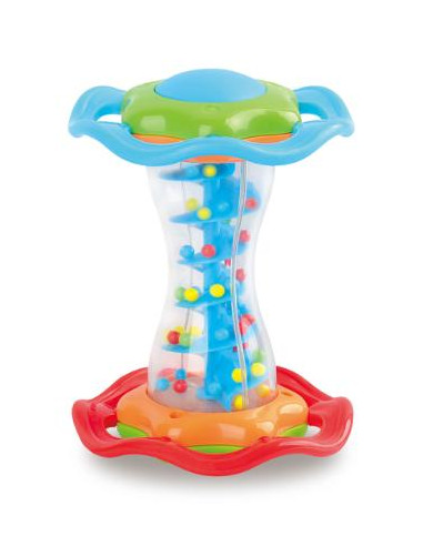 Rodillo de palo de lluvia incorporado que favorece la motricidad en general. Al hacerlo rodar y rodar por el suelo, estimula el gateo y el desplazamiento. Con zonas de rodadura blanditas que lo hacen silencioso.