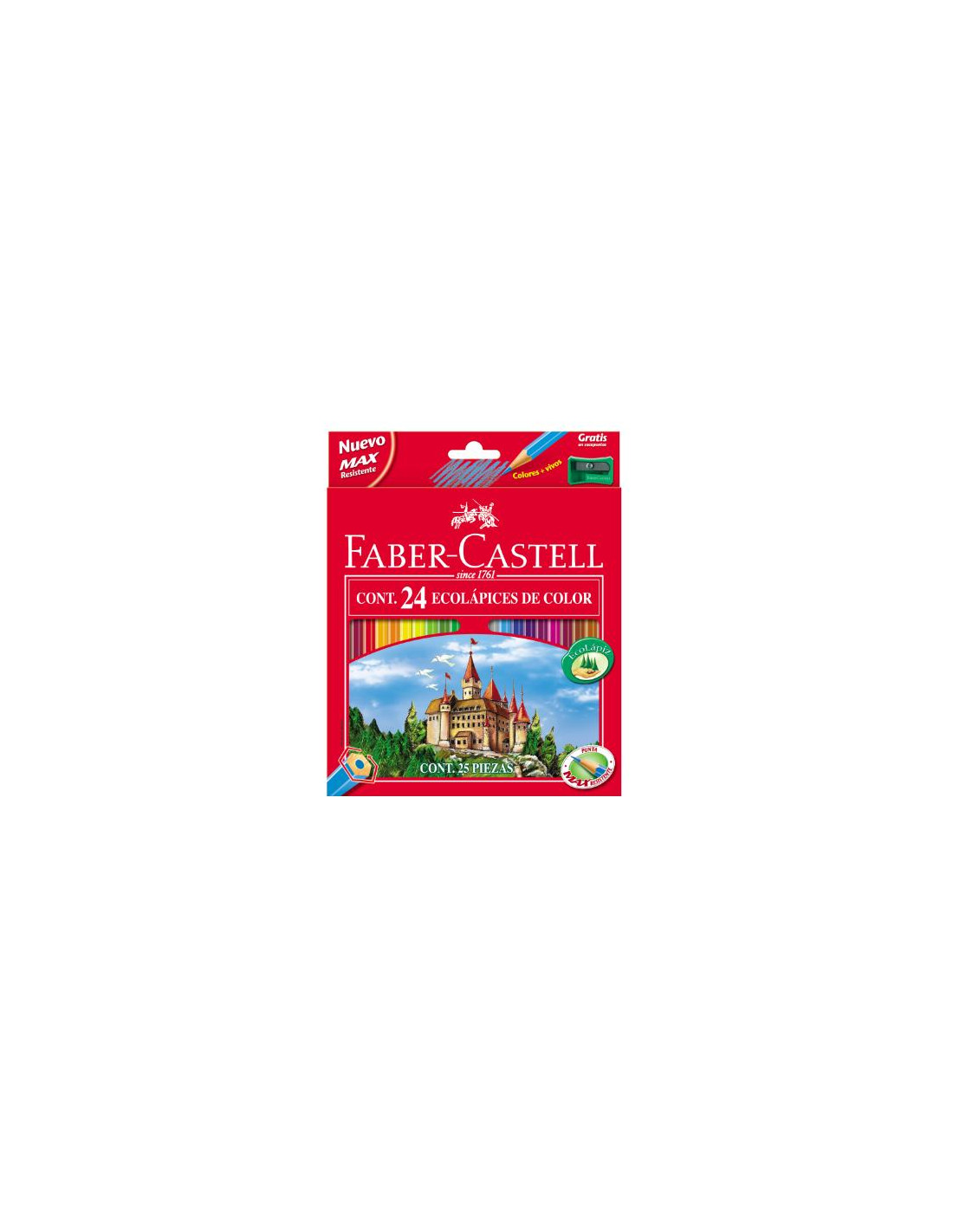 Ecolápices de color hexagonales largos. Fabricados en madera 100% reforestada. Mina protegida contra rotura por el proceso especial de encolado SV. En cajas de colores surtidos con sacapuntas de regalo.