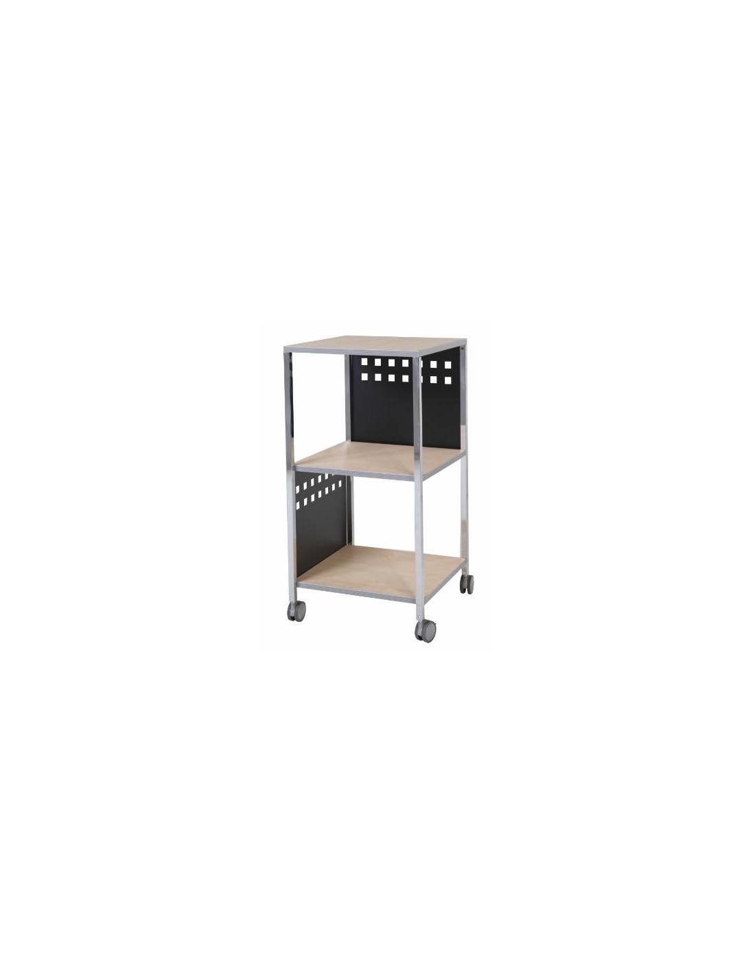 Carro multifuncional realizado en melamina de 19 mm y en acero pintado. Apto para servicios de catering, audiovisuales, almacenamiento etc. Sus paneles laterales aumentan la privacidad deseada. Ruedas de altas prestaciones. Fácil montaje. Superficie panel superior: 45 x 45 cm. Altura: 86 cm