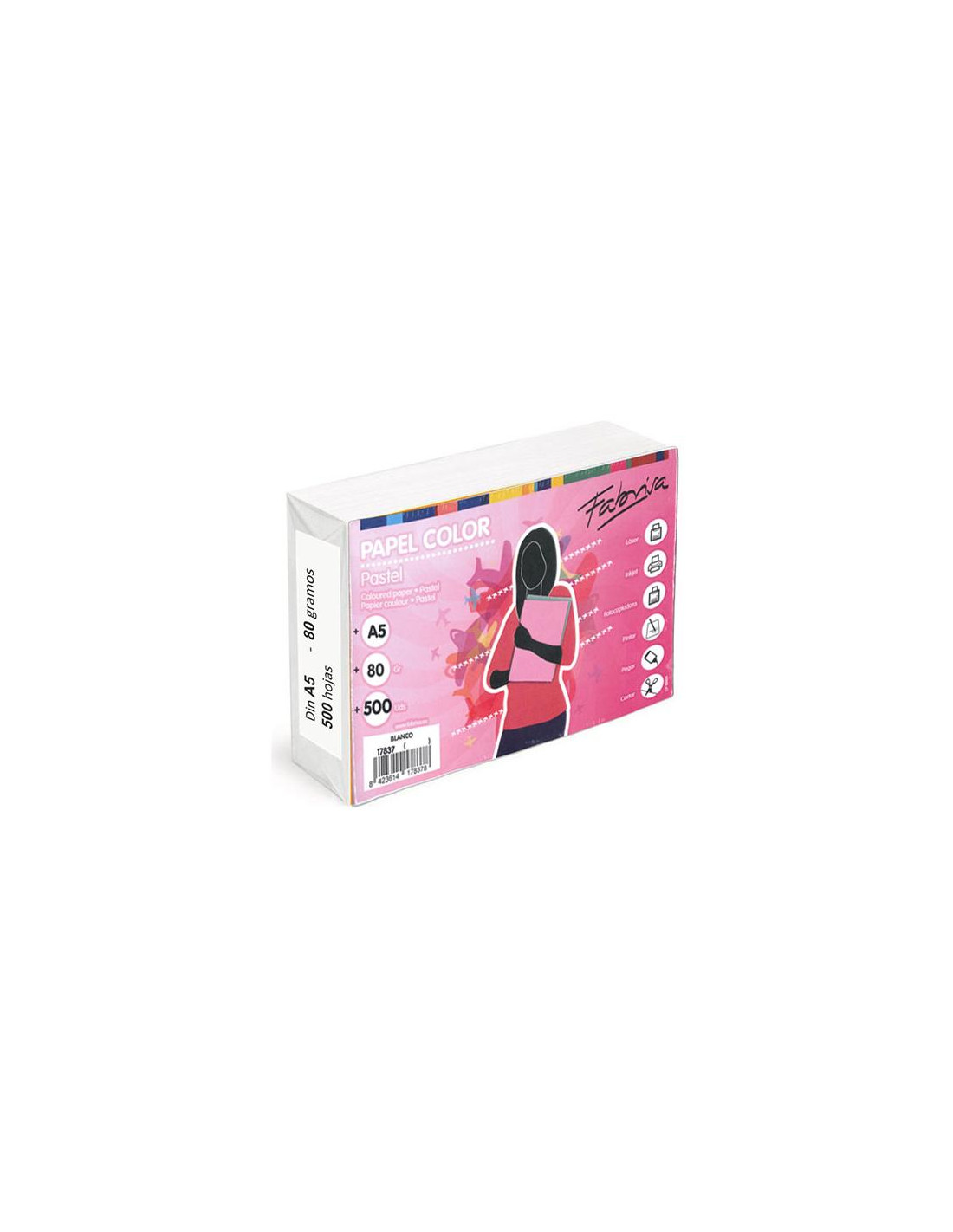 El paquete de 500 hojas A5 de papel Fabrisa, con un gramaje de 80 gramos, es una solución versátil y de alta calidad para distintas necesidades de escritura e impresión. Su tamaño compacto A5 es ideal para notas, formularios, agendas y documentos que requieren un formato más manejable. El papel de 80 gramos ofrece un equilibrio perfecto entre ligereza y opacidad, permitiendo una escritura suave y evitando el traspaso de tinta.