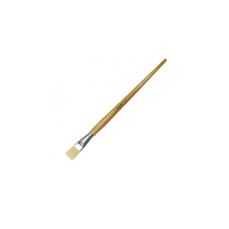 El pincel Milan M/C de cerda plano Nº12 serie 522 es una herramienta de alta calidad, fabricado con cerdas naturales resistentes, ideal para técnicas con óleo y acrílico. Su forma plana y tamaño permiten trazos amplios y uniformes, ideal para cubrir superficies grandes y hacer bordes definidos.