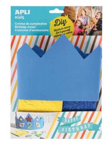 Coronas fáciles y rápidas de montar. Incluye piezas adhesivas para decorar. Números adhesivos del 0 al 9.