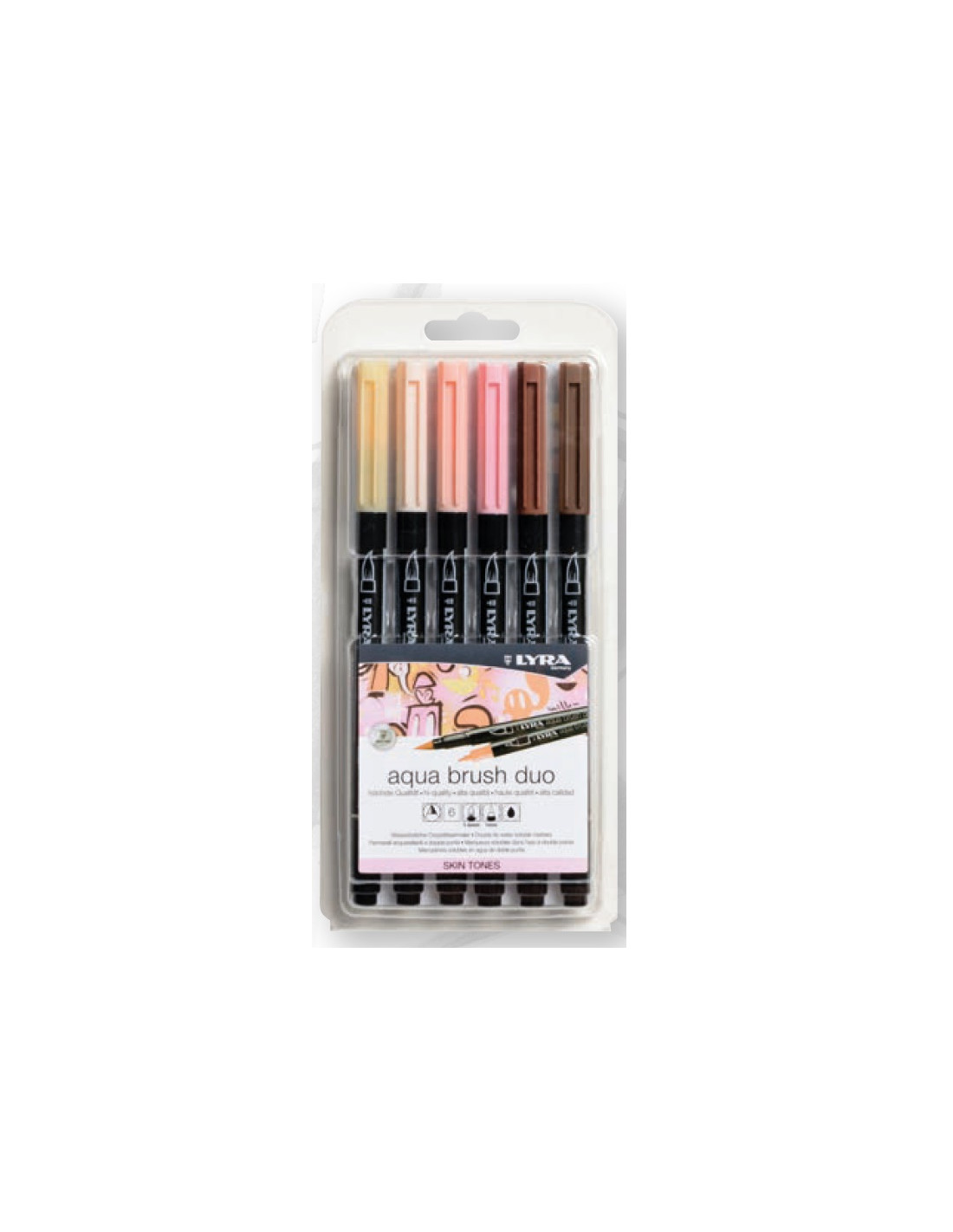 Estuche de 6 Rotuladores Lyra Aqua Brush SKIN es una selección premium diseñada para satisfacer las necesidades de artistas y diseñadores que buscan calidad y versatilidad en sus herramientas creativas. Cada rotulador cuenta con una punta de pincel flexible que permite realizar trazos amplios, sombreados detallados y técnicas de acuarela con facilidad.