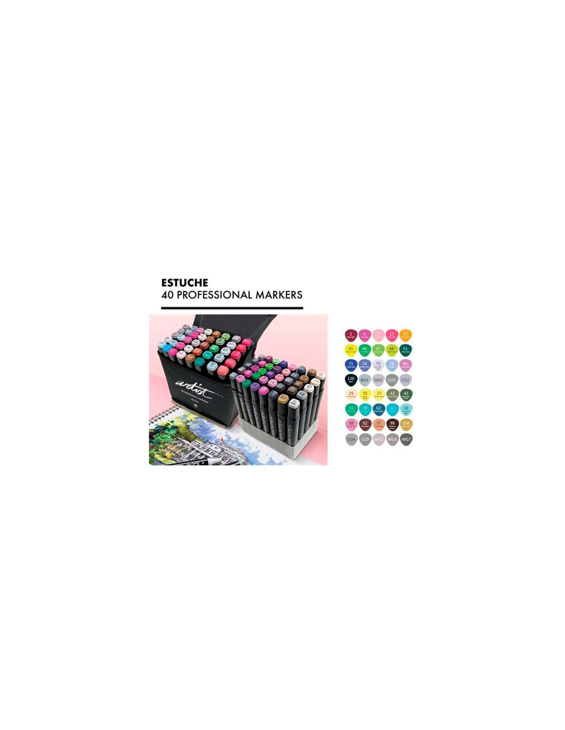 ▷ ROTULADORES ARTIST 40 UDS DOBLE PUNTA ALEX BOG LUXURY | Taine - Imagen 1