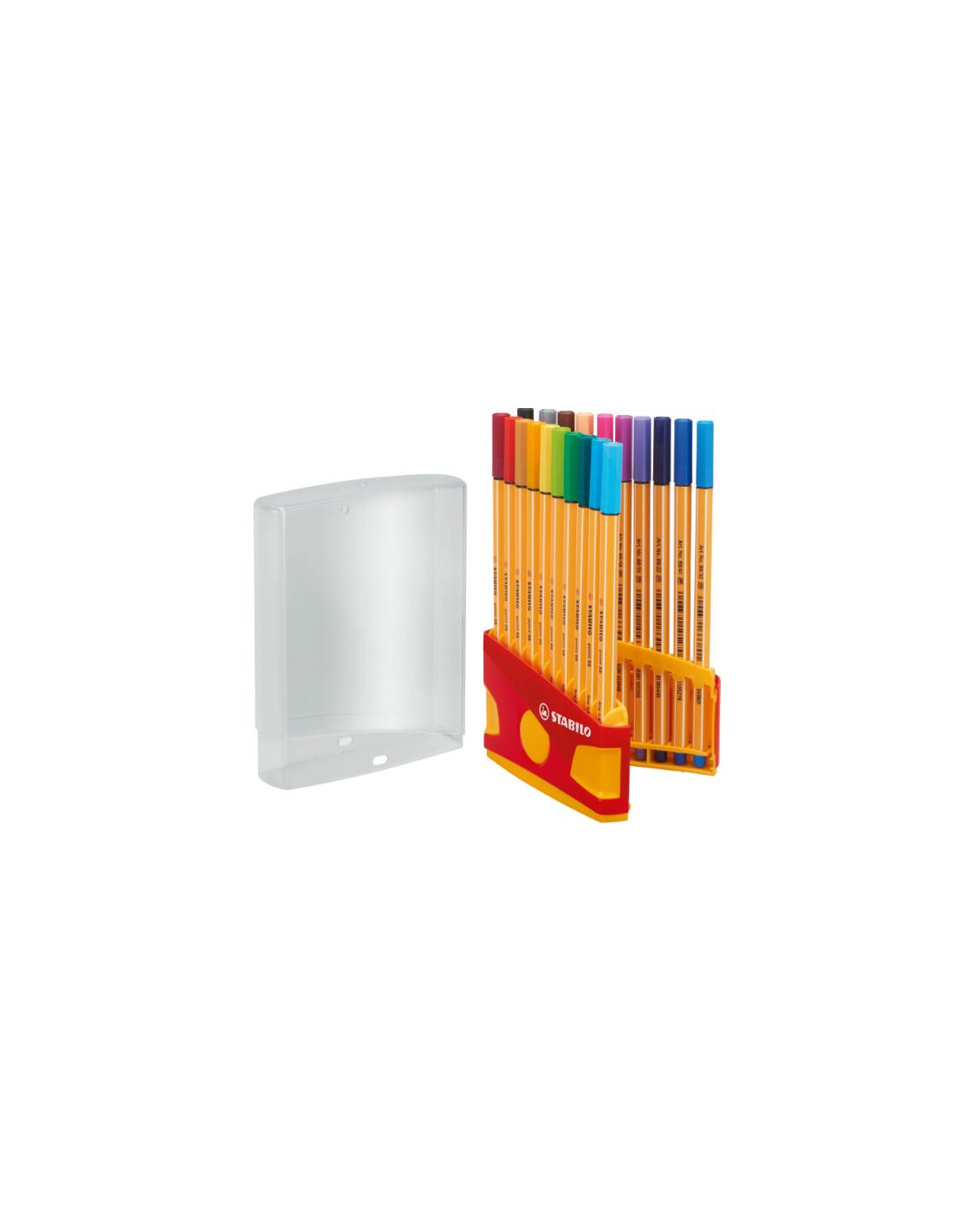 El estuche Stabilo Parade incluye 20 rotuladores Point 88, conocidos por su trazo fino y preciso de 0,4 mm, ideal para escritura, subrayado y trabajos de detalle. Este estuche práctico y colorido permite tener todos los colores organizados y al alcance, facilitando el transporte y uso diario. Cada rotulador cuenta con tinta de alta calidad y larga duración, y su característico diseño hexagonal evita que se deslicen.