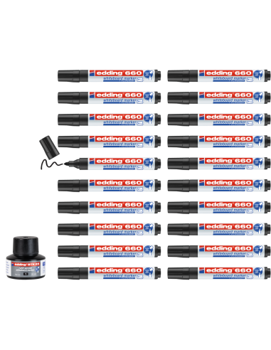 ROTULADORES EDDING 660 20 UDS PIZARRA NEGRO+1 TINTERO PTA.CONICA 1,5-3MM